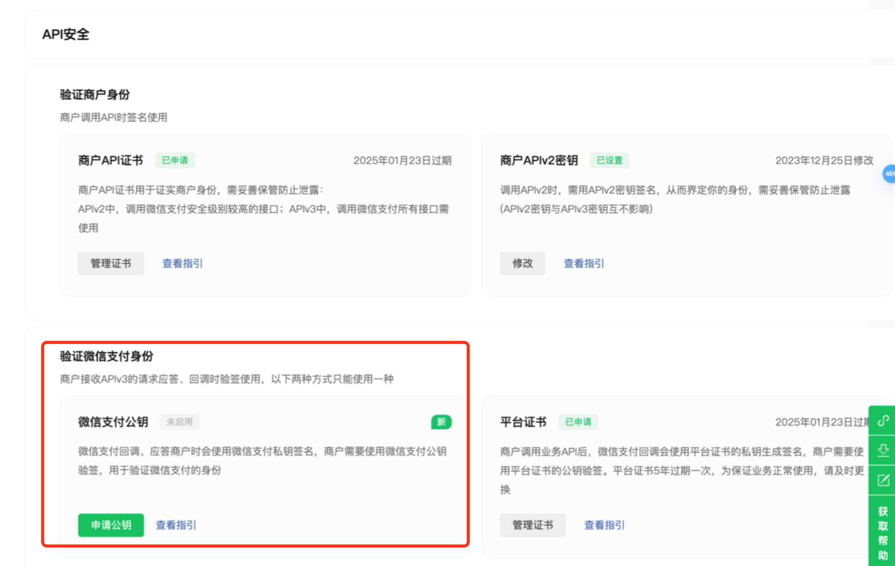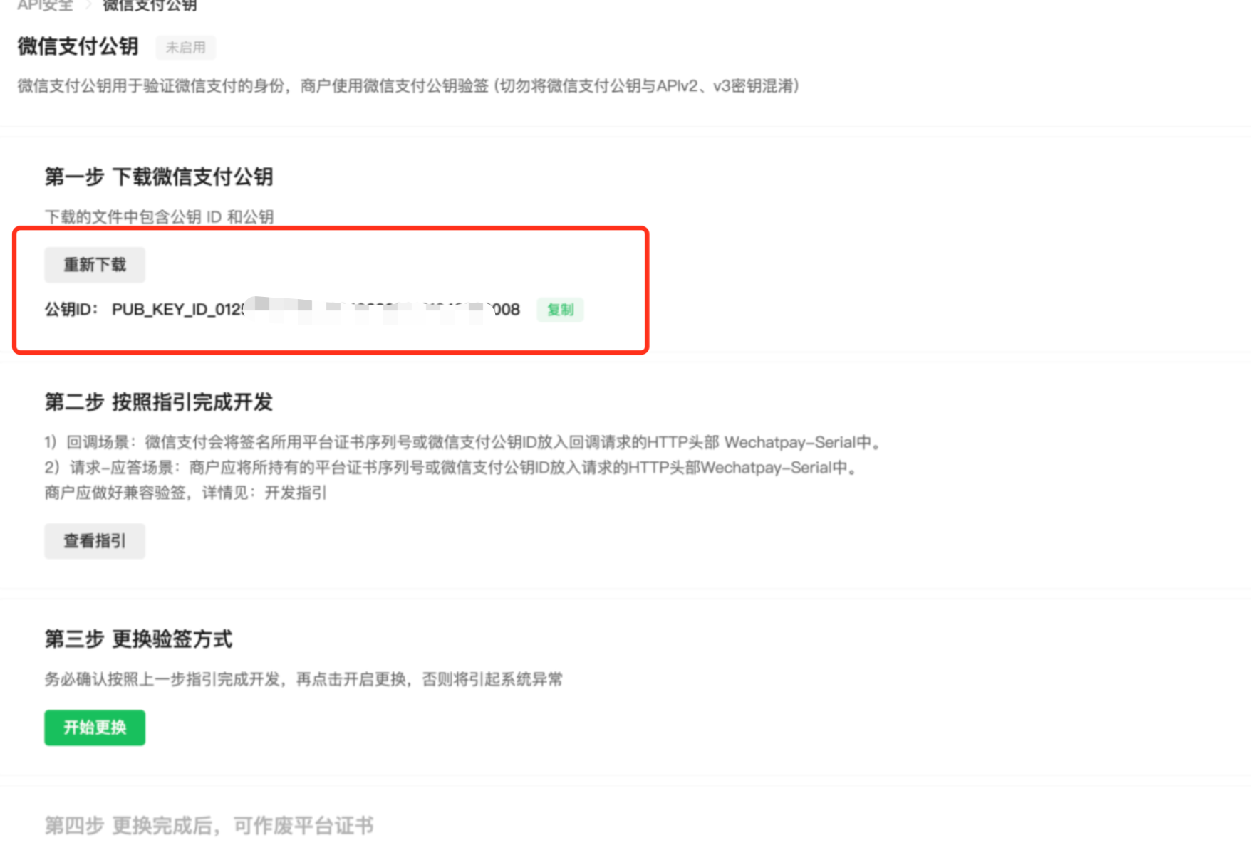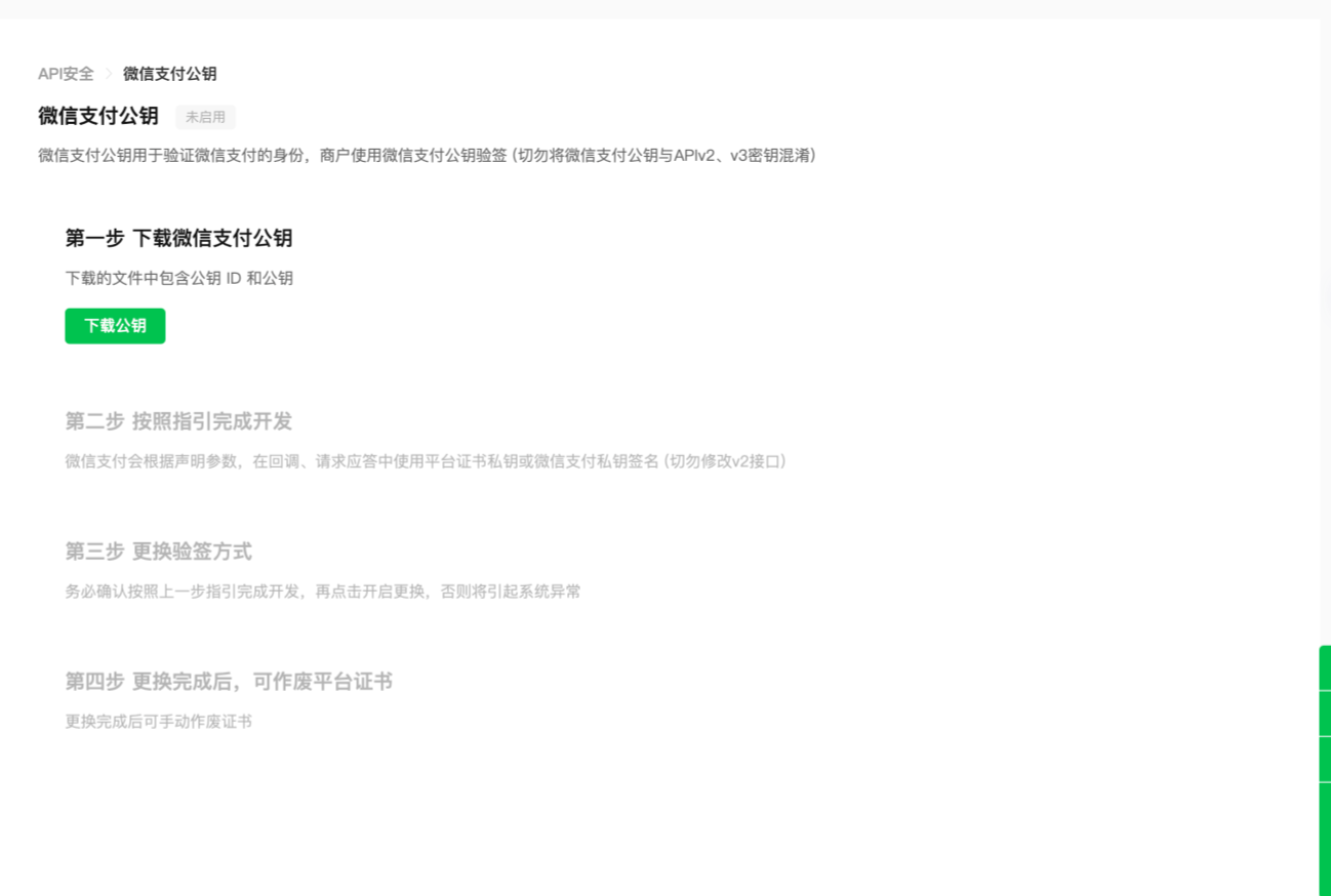 一、微信官方更新接口,后續(xù)都使用 【微信支付公鑰】,所以我們也決定使用最新的,下面是切換步驟: